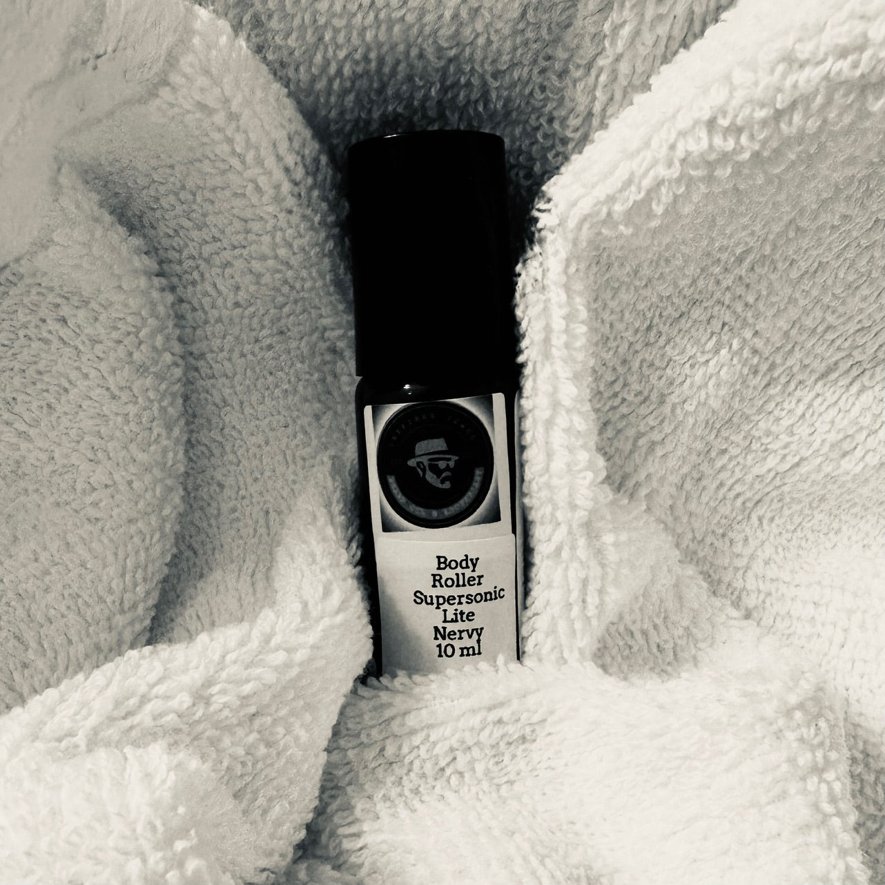 For this blend, we use our original Supersonic Lite formula, then we add magnesium, geranium, lemongrass, and black pepper essential oils. We top this one off with just enough capsaicin to make your nerves say thank you, but not enough to be hot. Unlike our usual lavender-oriented smell, this roller smells more citrusy.